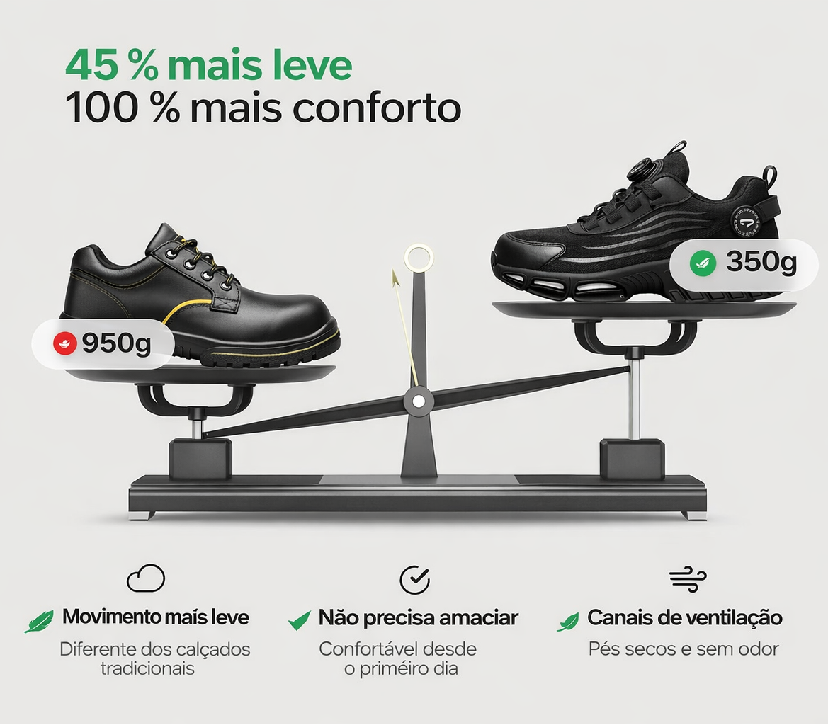Se você vive de pé ou sente aquele desconforto constante depois de um dia longo, o Tênis Ortopédico S3 Pro foi feito para mudar sua vida. Esqueça sapatos que parecem martelar seus pés — aqui cada passo é amortecido, alinhado e protegido, reduzindo impacto nas articulações e trazendo alívio imediato.
